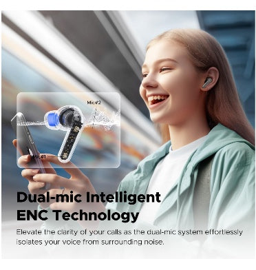 Say goodbye to distorted calls and focus on your conversations with confidence. The innovative directional sound transmission focuses the microphone on your voice, capturing every word with precision. The dual microphone in each wireless earbuds setup effectively suppresses ambient noise, delivering clear and crisp calls for both you and the person on the other end. Stay connected with crystal-clear call quality, no matter where you are.