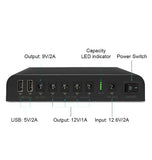 - Output: 4 x DC 12V (voltage range is 12.6-9V) | 1 x DC 9V | 2 x USB 5V