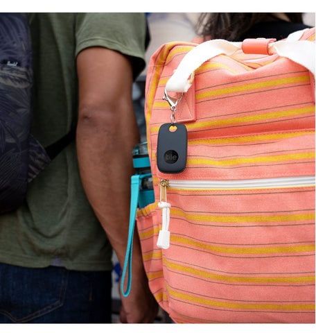 Powerful trackers for keys, backpacks, and purses. Water-resistant with an up to 400 ft. Bluetooth range, our loudest ring and up to 1-year replaceable battery, Pro easily attaches to anything you need to keep track of regularly. Just open the free Tile app and tap Find to locate your stuff. You can also double press the button on your Pro to ring and find your phone.