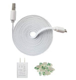 - 1 x 10FT Extension Cable with Micro USB Connector, 1 x DC 5V1A Adapter, 5 x Adhesive Cable Clips