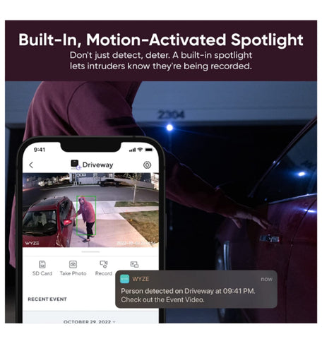 Wyze Cam V3 Pro can recognize people, motion, sound with custom push alerts straight to your phone.