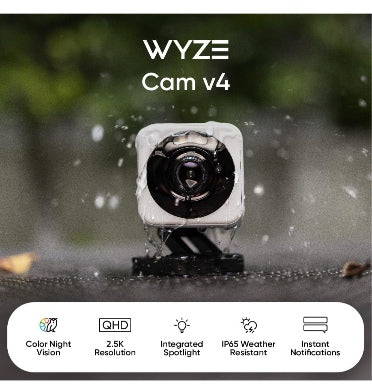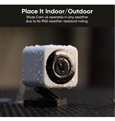 Wyze Cam v4 operates in any weather due to its IP65 weather-resistant rating.