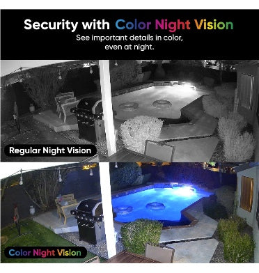 - Resolution: 2.5K QHD (2560 x 1440) | Digital Zoom: 8x | Wide Dynamic Range (WDR): Yes | IR Lights: 4x850 nm | Day/Night Vision: Yes | Night Vision: 4 IR LEDs (850 nm) + 2 white spotlight LEDs (72 lumens) | Color Night Vision: Yes | Video Encoding: H.264 | Video FPS: Daytime 20 FPS / Nighttime 15 FPS