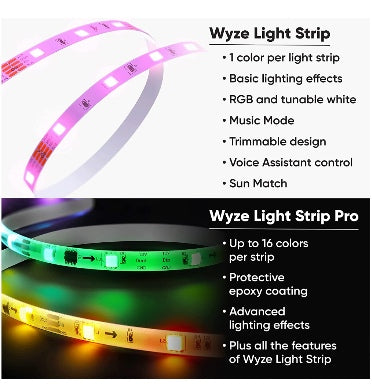 Wyze Strips Pro has a chip between every 3 LED lights which allows for multiple colors to display at the same time and advanced lighting effects.