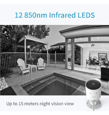 The night sky is beautiful, but the streets can be dangerous, so let YI Outdoor Camera be there to give you a sound sleep. The 12 850nm infrared night vision supports automatic color switch filter in low light. Night vision at 20fps gives a smooth performance, with no ghost artifacts and has a visual distance of up to 15 meters.